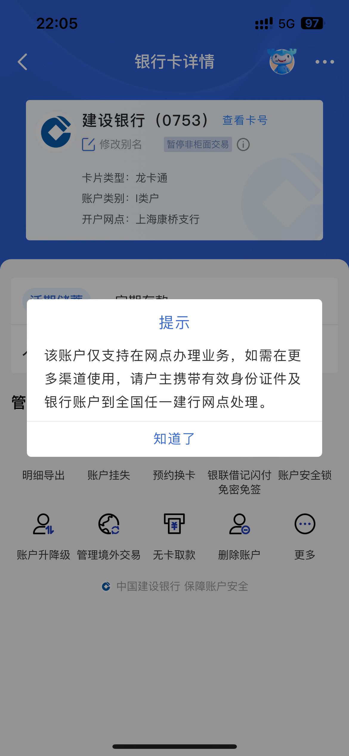 我建行签个字就给我解了 10分钟不到 还给我推销办了个信用卡