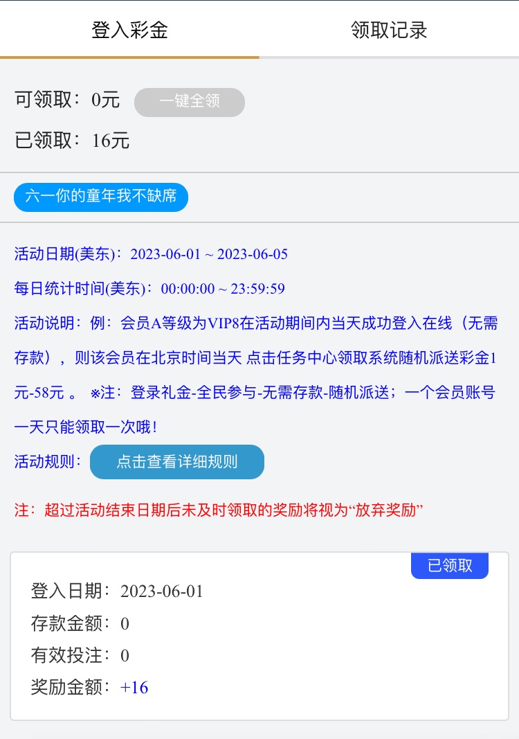 一个是6.1活动要vip1才能领取,一个是每天七点左右在线幸运福袋