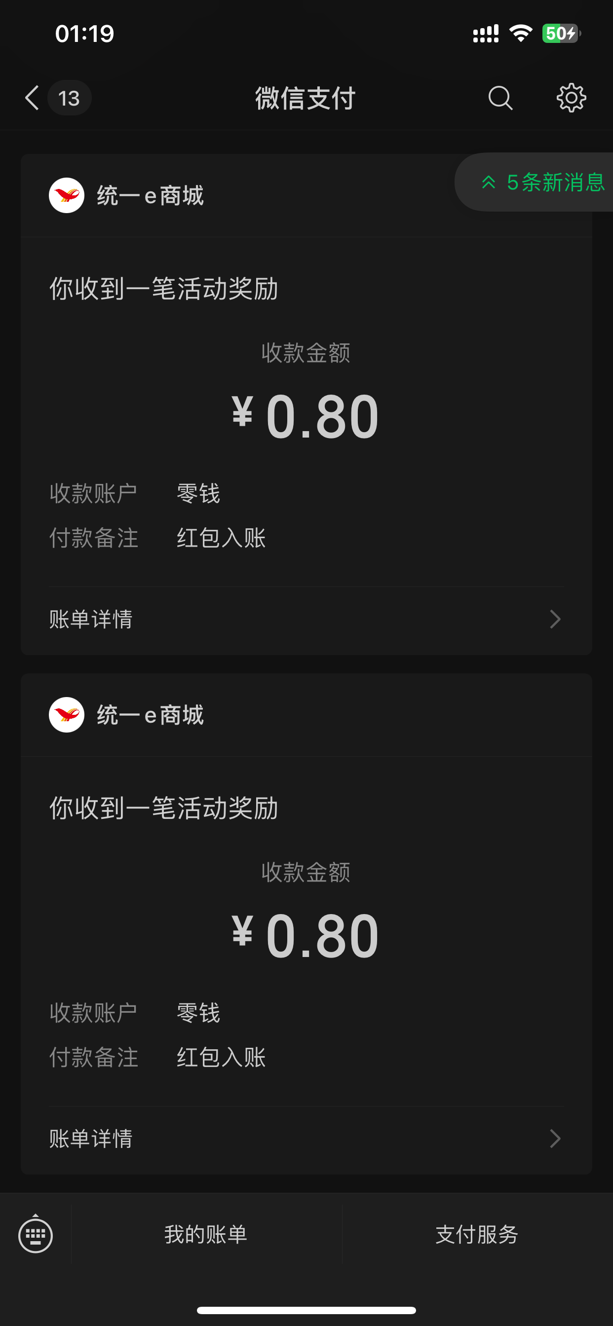 感谢婷婷让我抽中个5块代金卷