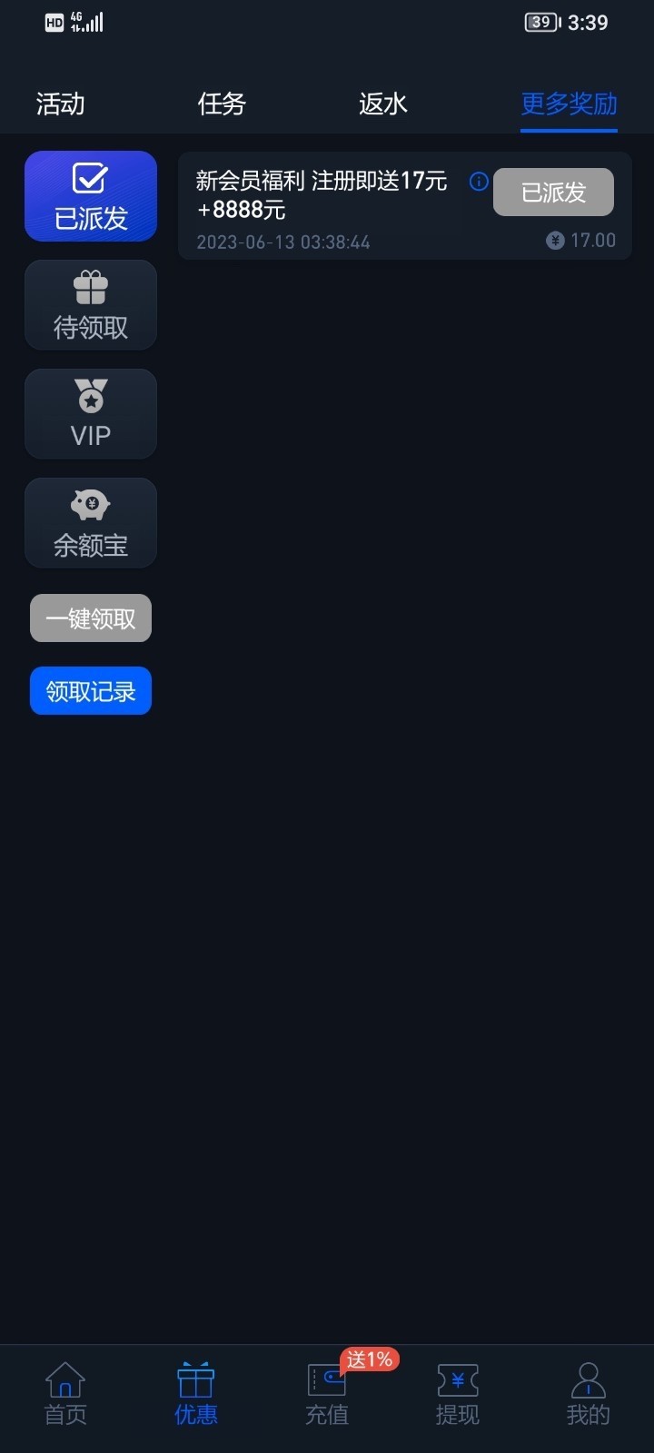 注册绑卡手机号下载送17,这个是677和别的不一样的,大家去试试吧没送无视