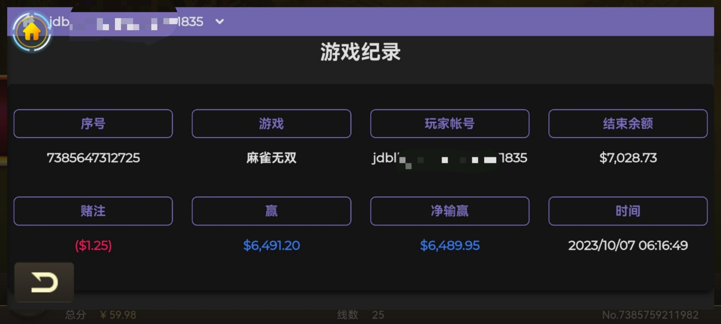 我习惯的玩法是低于1500本金我是绝对不会玩的,有些老哥就喜欢100,200冲,就算你红个100,200又怎么样?同样是红一倍本金,你是根本看不上眼的!付出和回报永远都是相对的,你别想着用100 ,200去赢1000,2000那种概率极低!百分之九十都是挂逼的!大多数老哥挂逼就会继续冲,那样就属于负追玩了,负追是大忌!特别容易上头!最终结果一样输个千把两千,甚至更多!