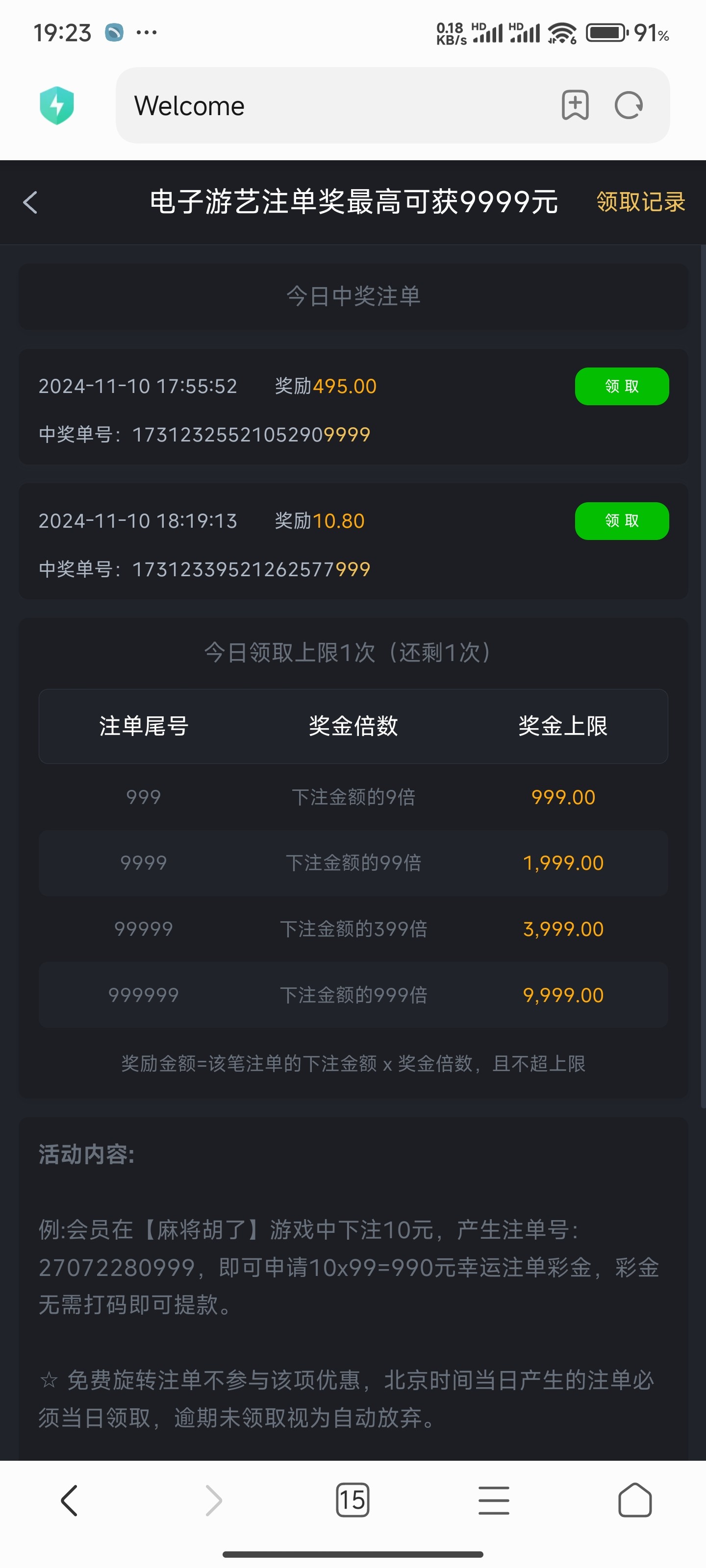 没号,注册去打了100+59,提了200,打LG电子还出了个幸运注单,提现到账美滋滋。