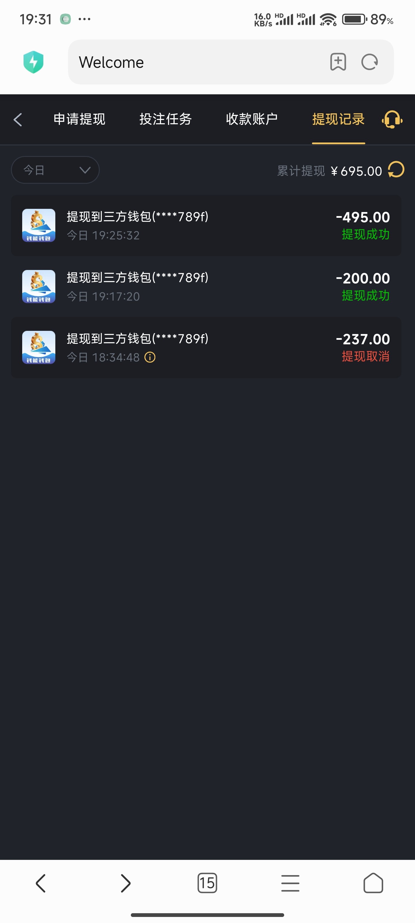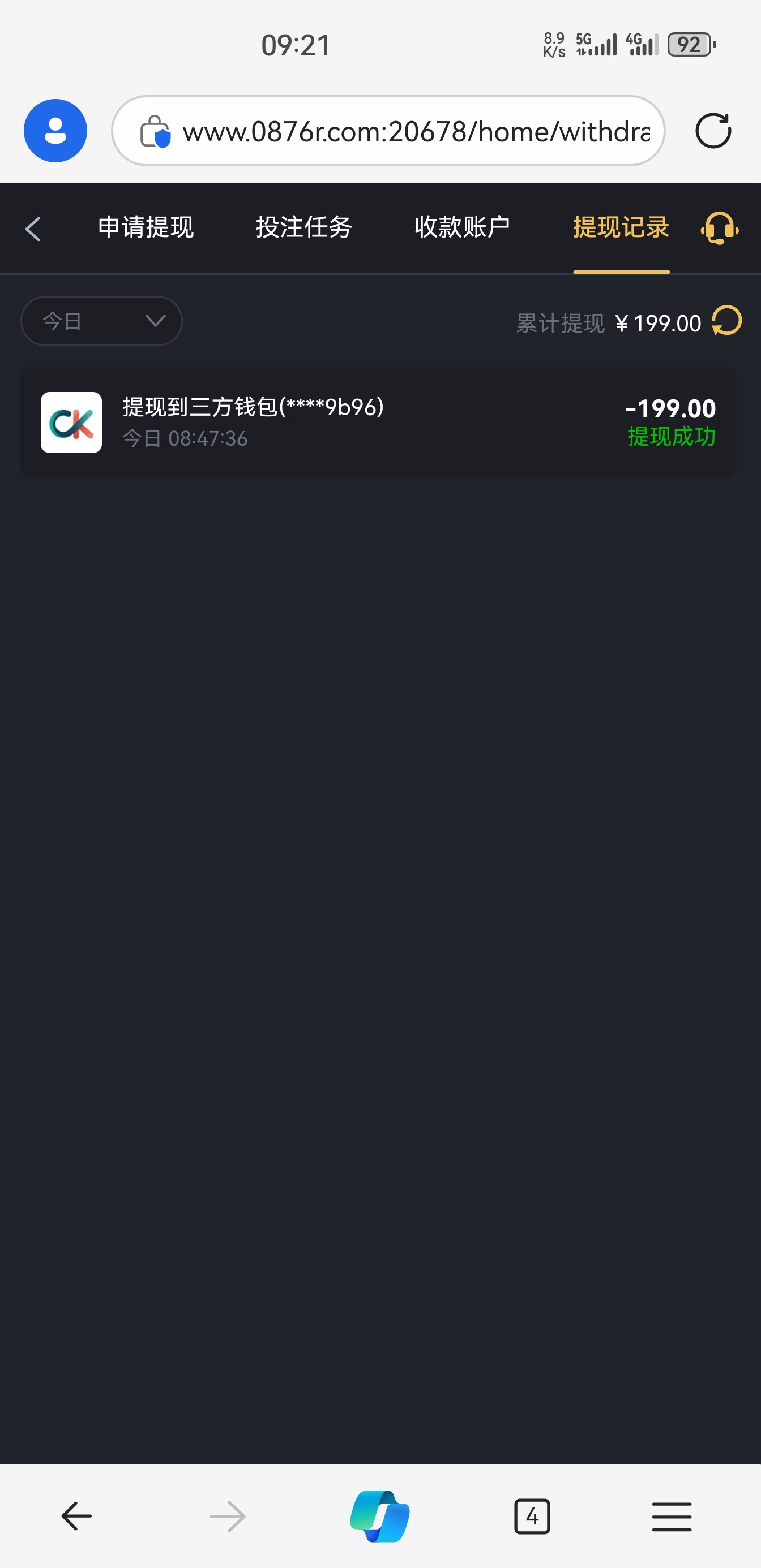 提现到账