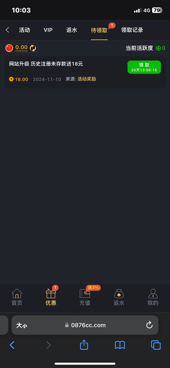 0876.com  活动介绍是 充值过的58,没充值过的18,注册过账号的都有。