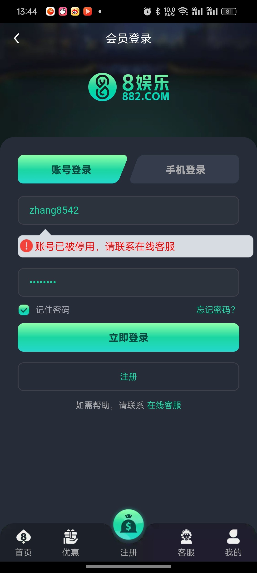 刚注册帐号就停用了,666