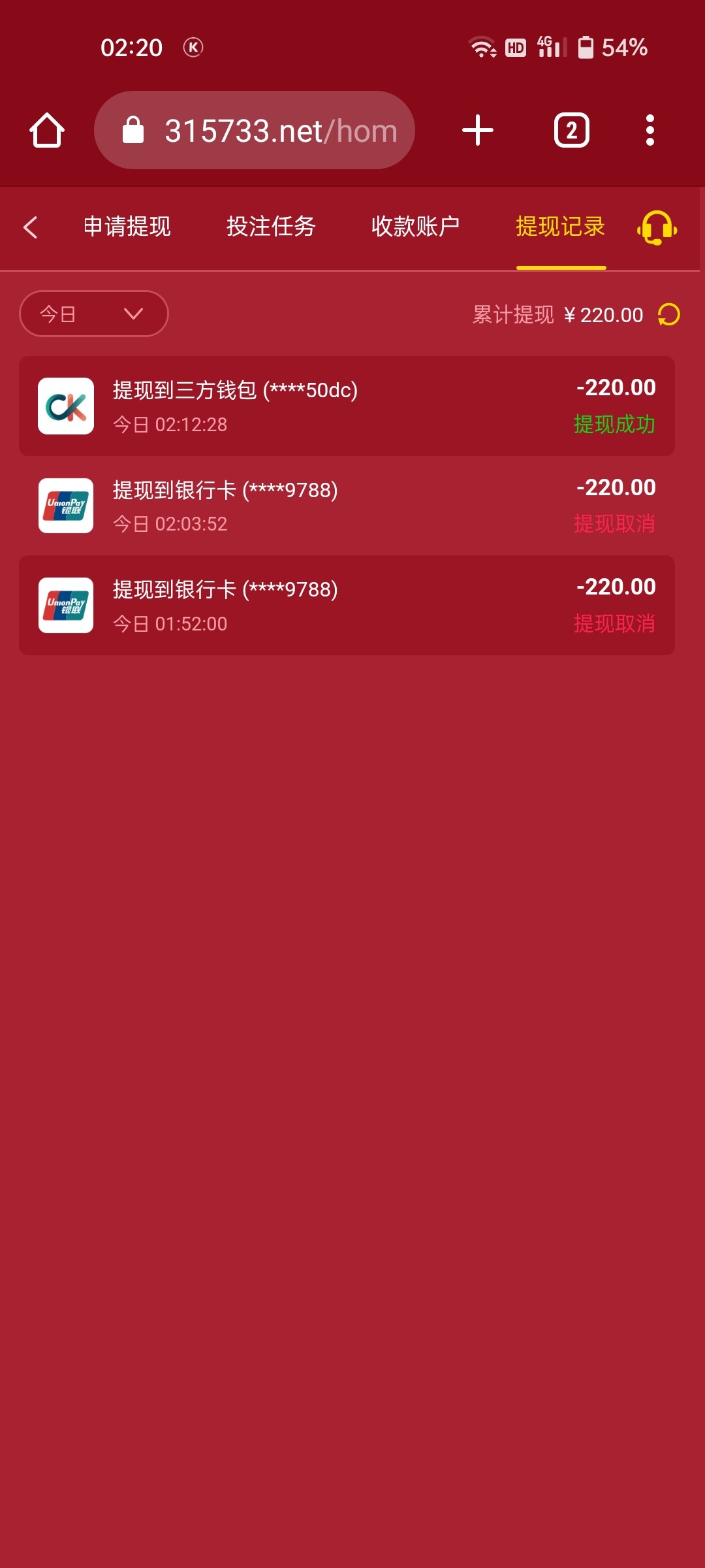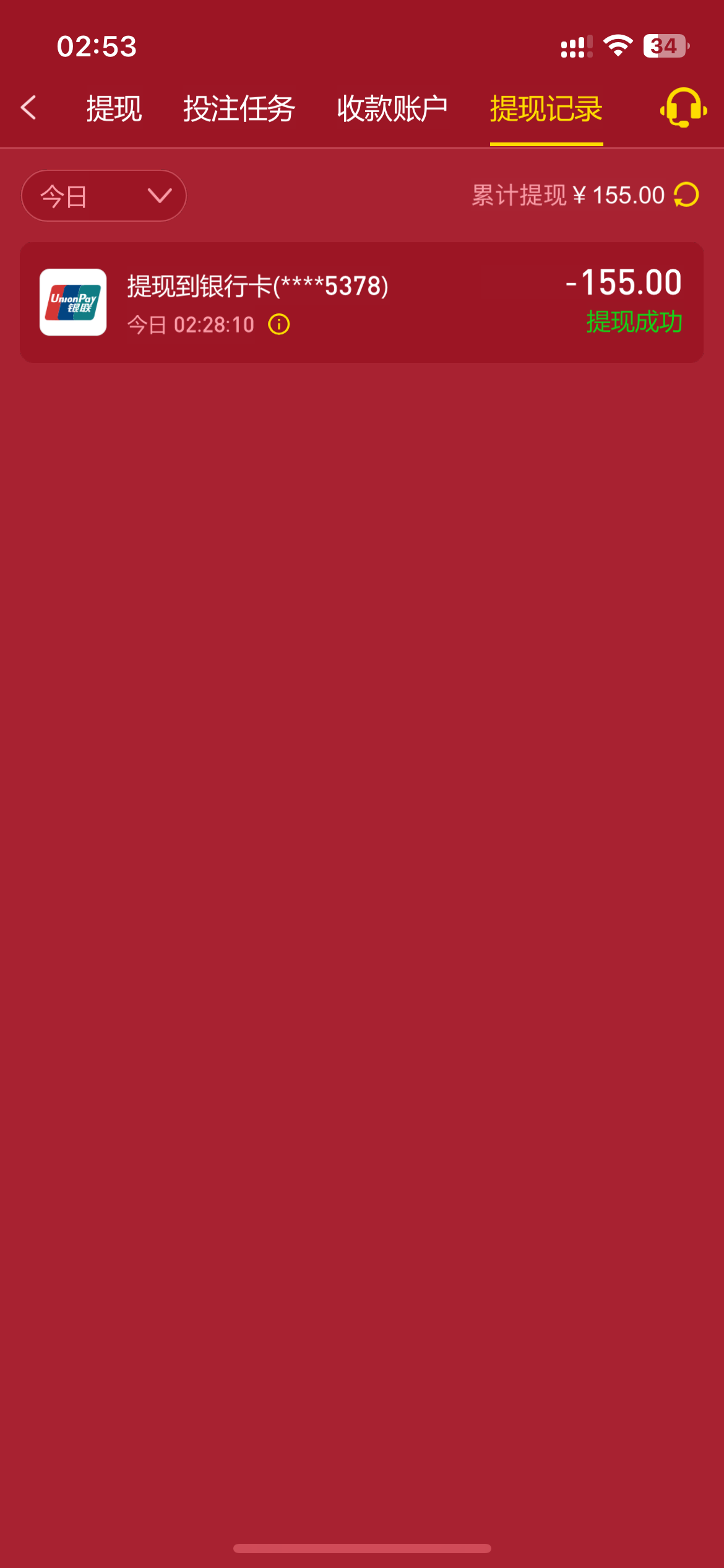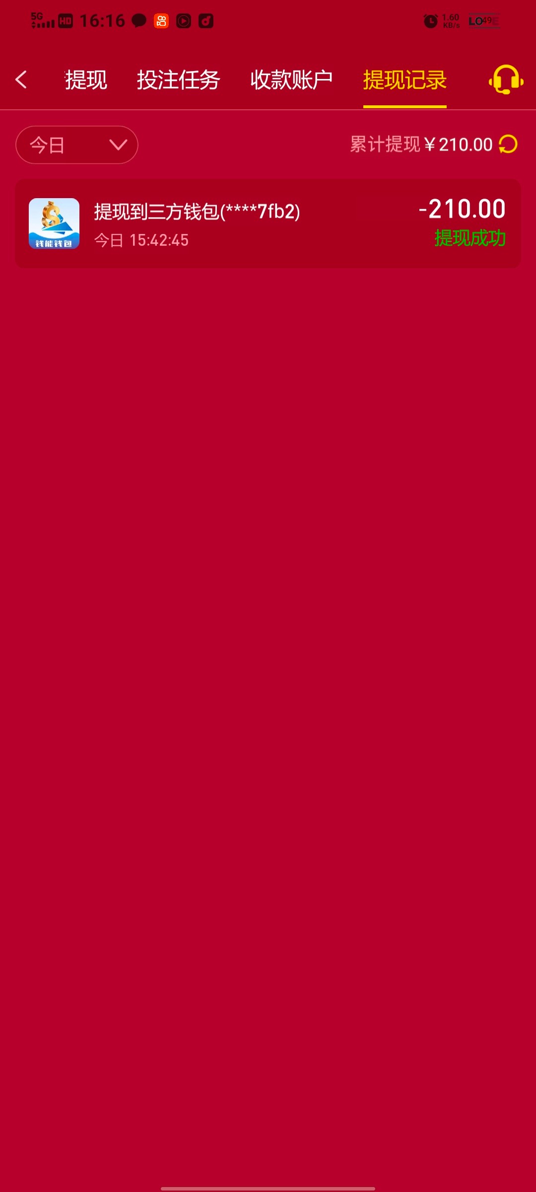 提现210到账
