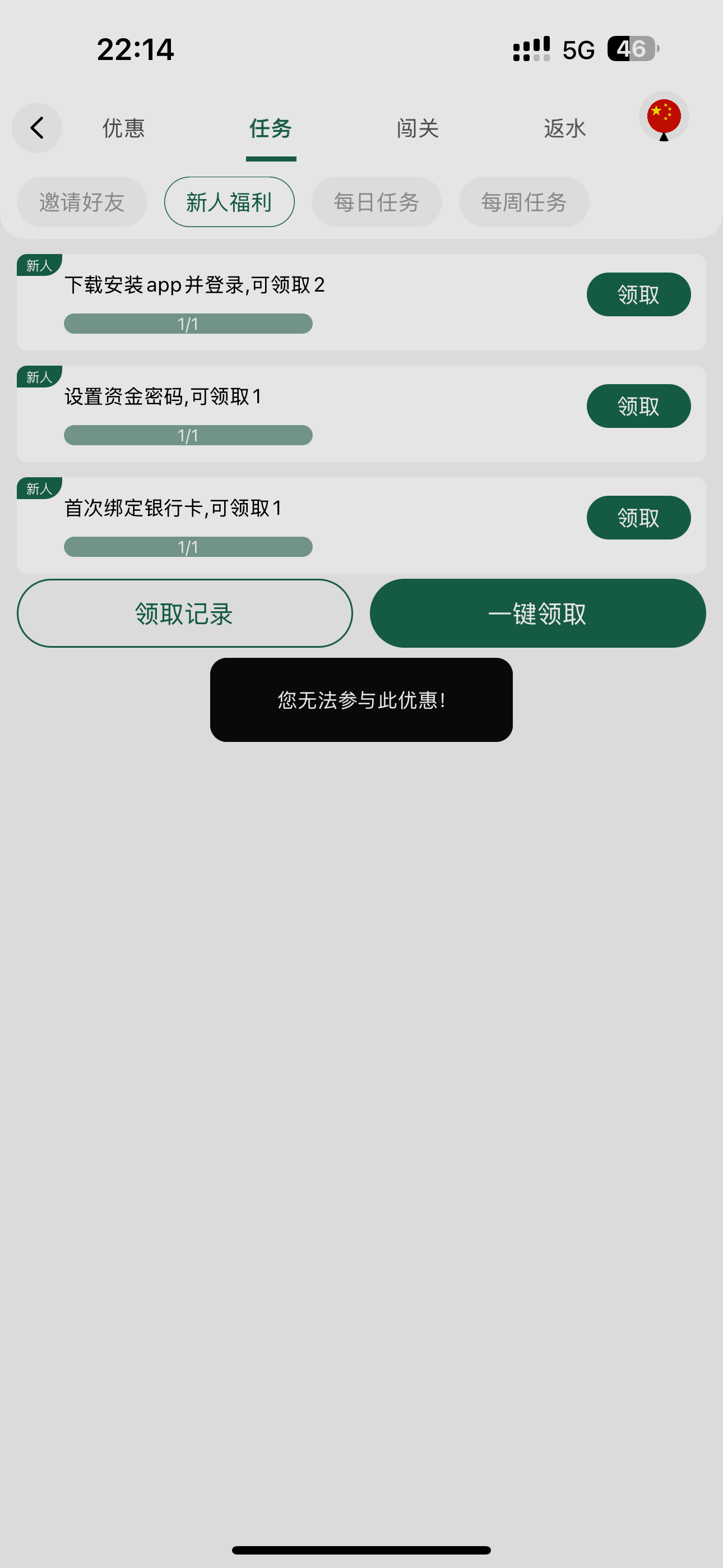 新用户注册完善信息下载APP在任务中完善任务领取彩金,具体自测吧