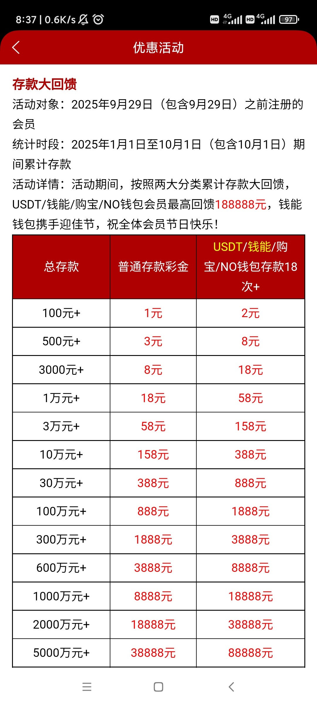 妈的 就那几个存款方式才算,我ok钱包充值都不算