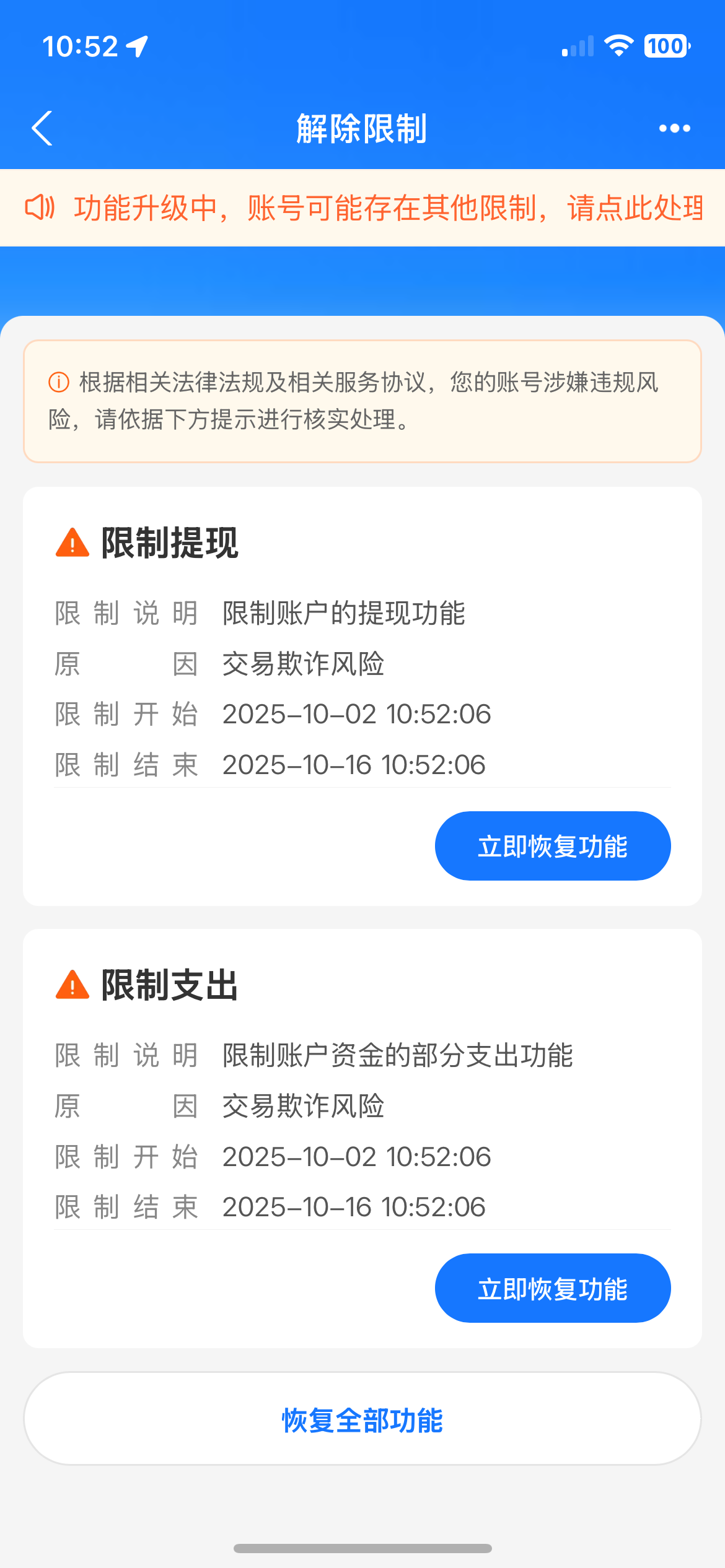 关于支付宝解封的问题