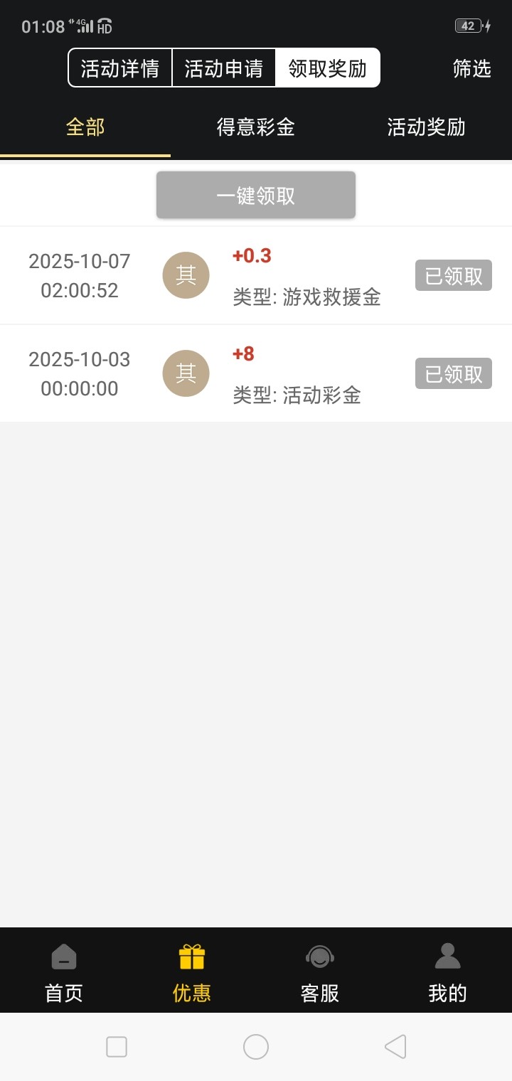 一个是普通存款回馈,一个是电子钱包跟usdt存款回馈,我回馈了一个158,一个58。