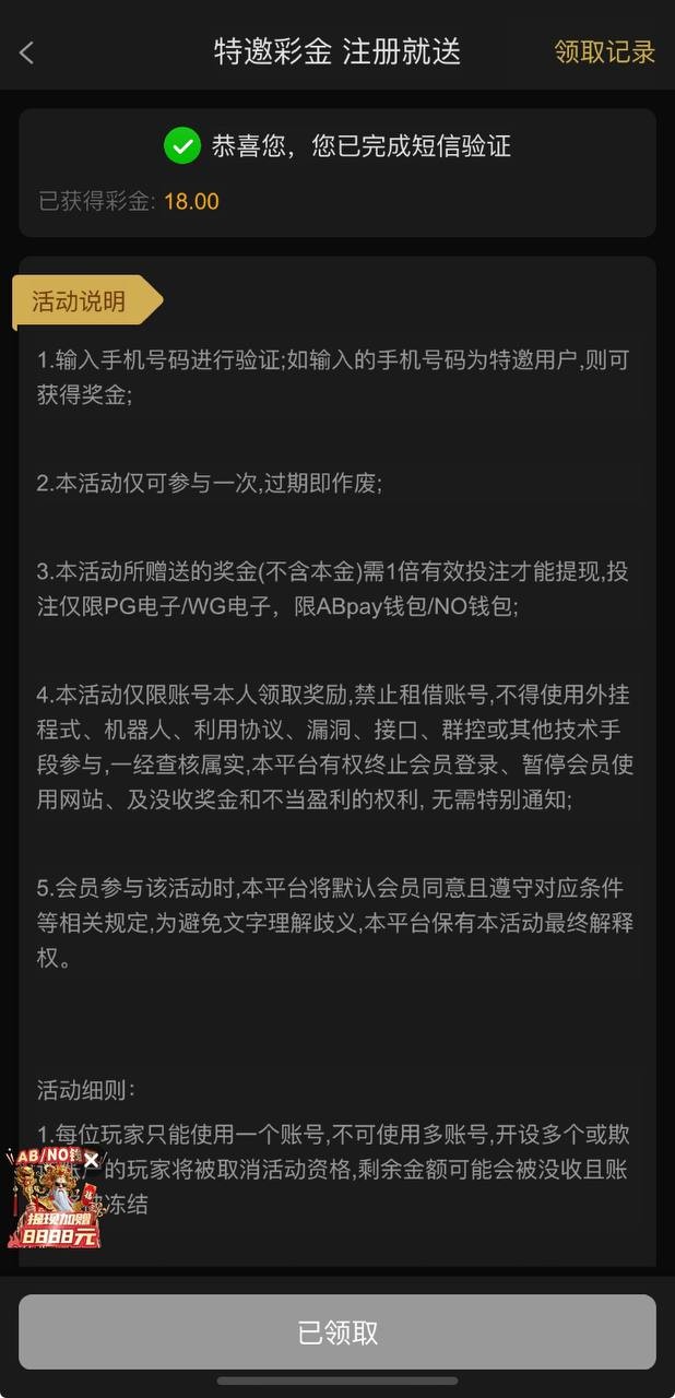 新用户注册自助验证特邀18彩金,具体自测吧
