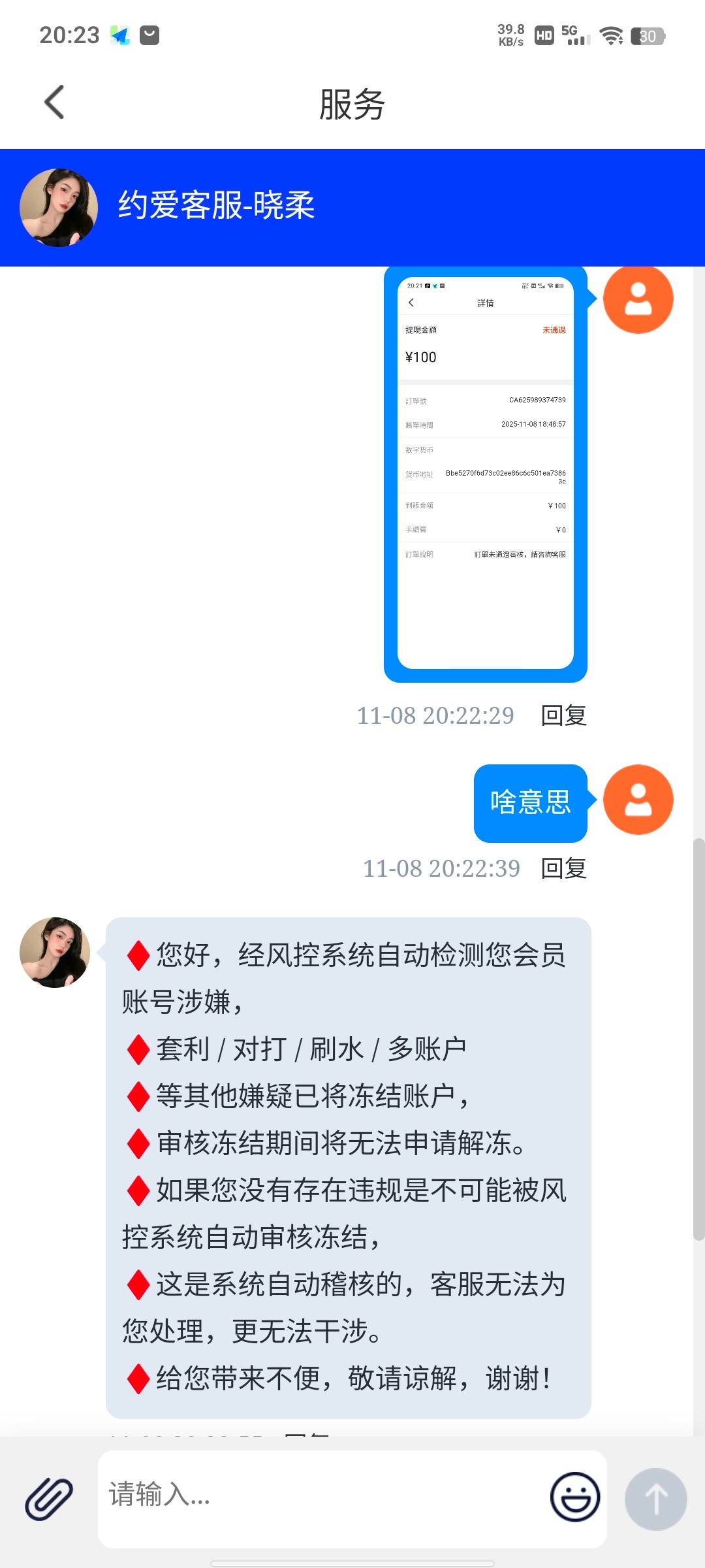 充100打到600,提现被秒封号,联系客服说套利、对打流水?我就正常拉pg女王真是无语。。。