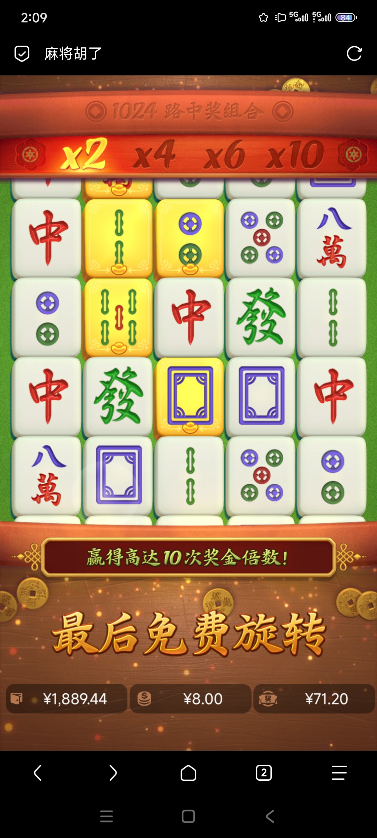 今天麻2一直2个糊 搞7-8次开了 1.6/120不给加转 后面2快7-8不开吃没了 别家7-8次开了爆6-7张
