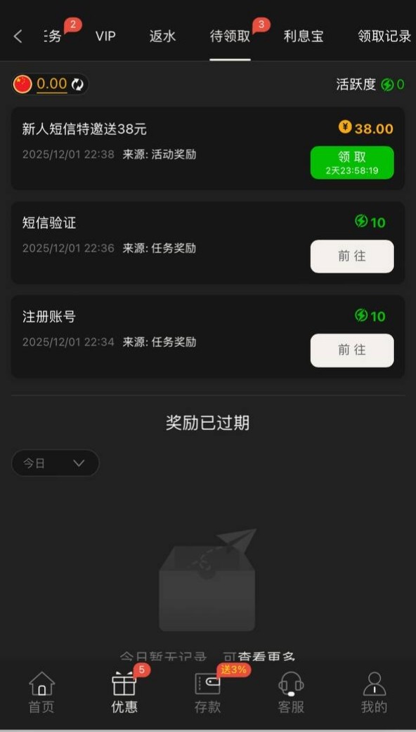 新用户注册绑定信息发短信送38彩金,具体规则自测吧