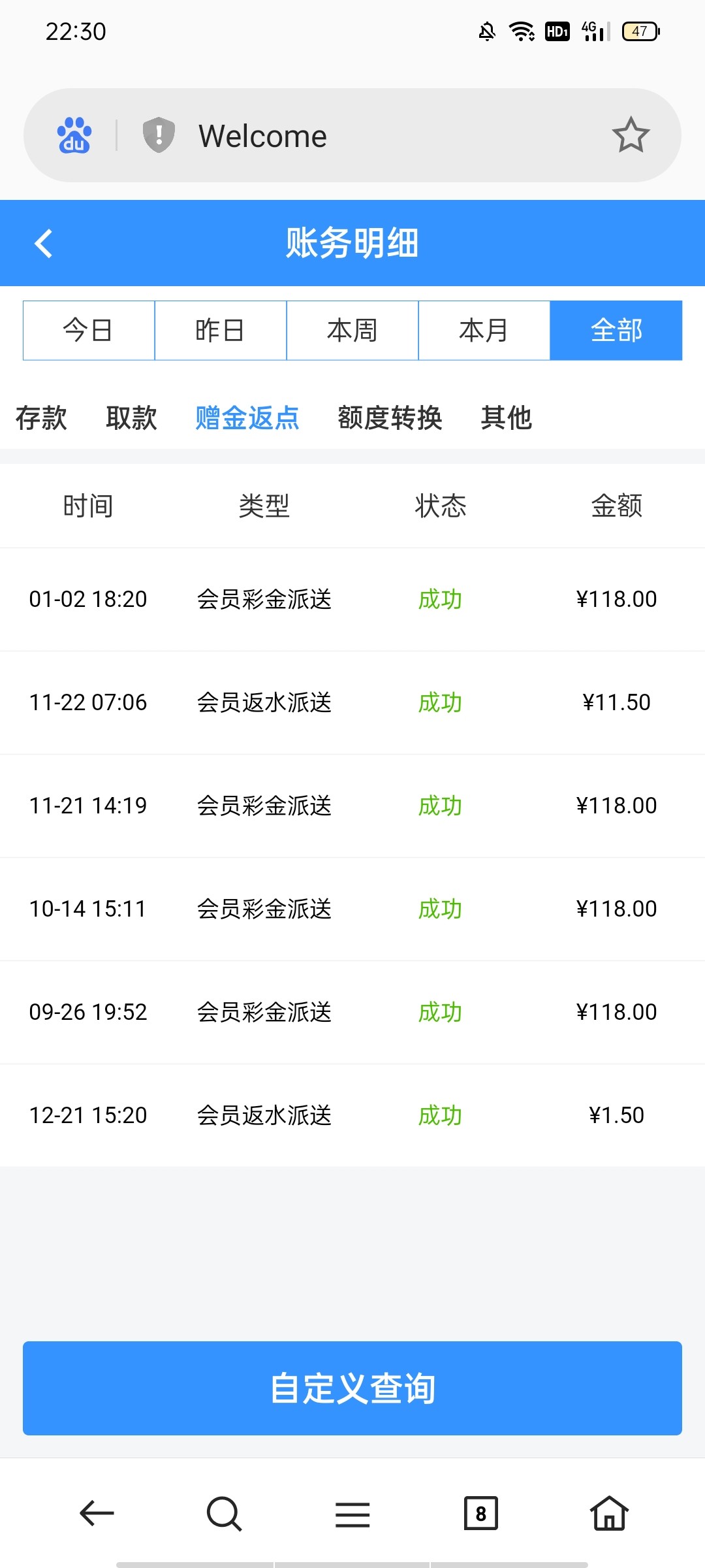 我提过几次款,也送了好几次118,稳