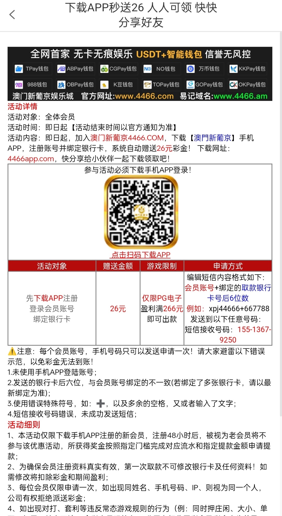 新用户注册完善信息发短信送26彩金,具体自测吧