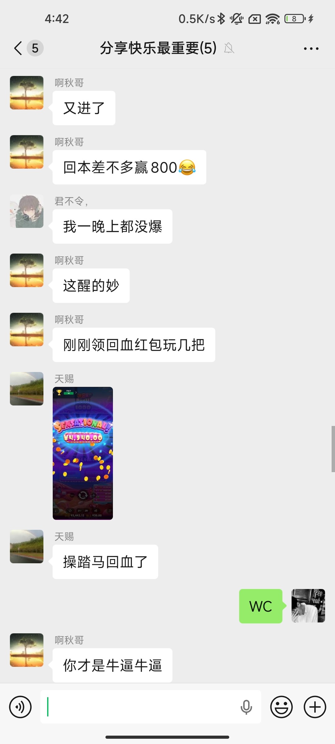 我玩这么多天,,才把前几天输的6000回本,他天天赢