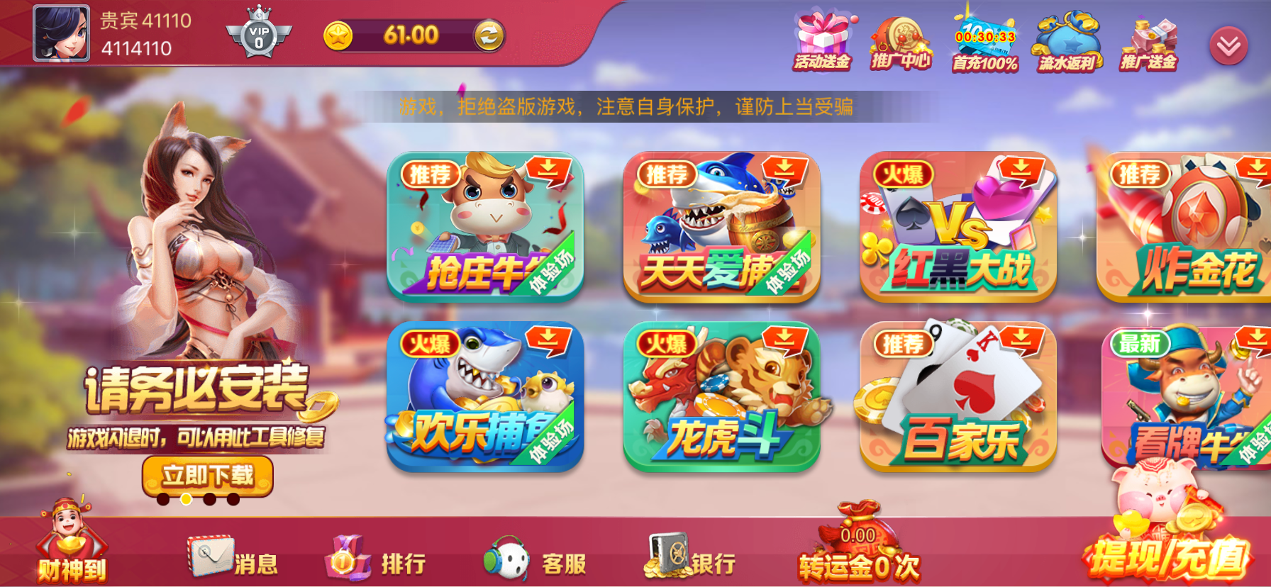 绑定送3,充50送8,一共61,大家别上当