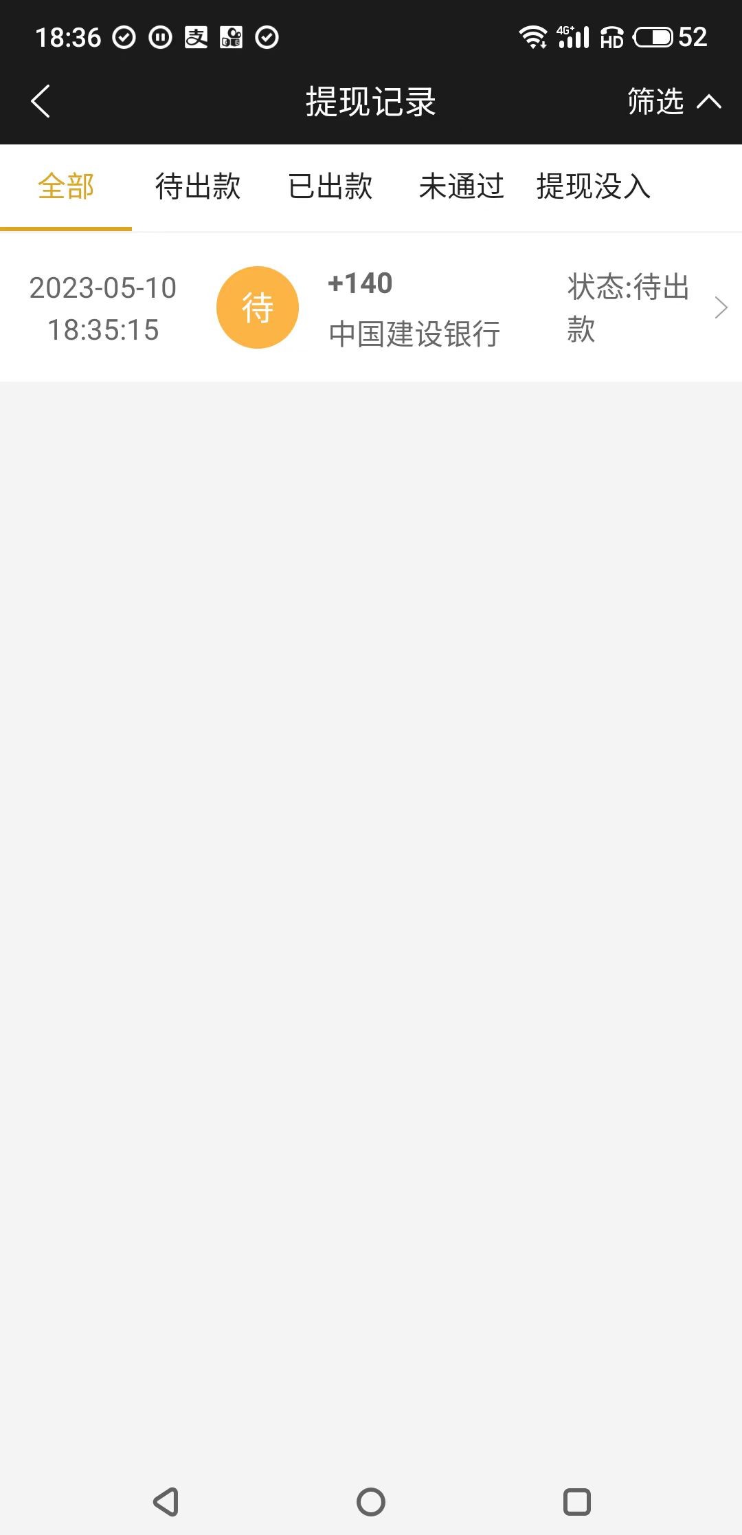 36块钱彩金打到指定提现额360,正在提款,期待到账